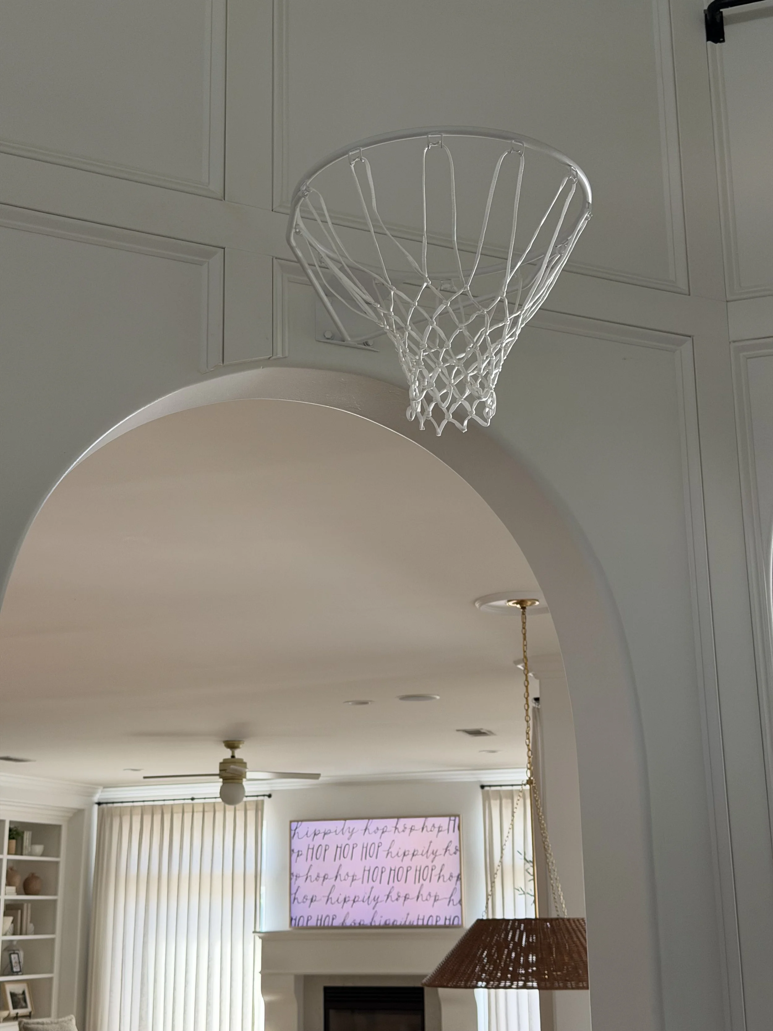 This was honestly one of the easiest little DIY projects. You really can’t find neutral colored basketball hoops anyway!! The white hoop looks way more minimal and blends into the room instead of standing out with bright colors.